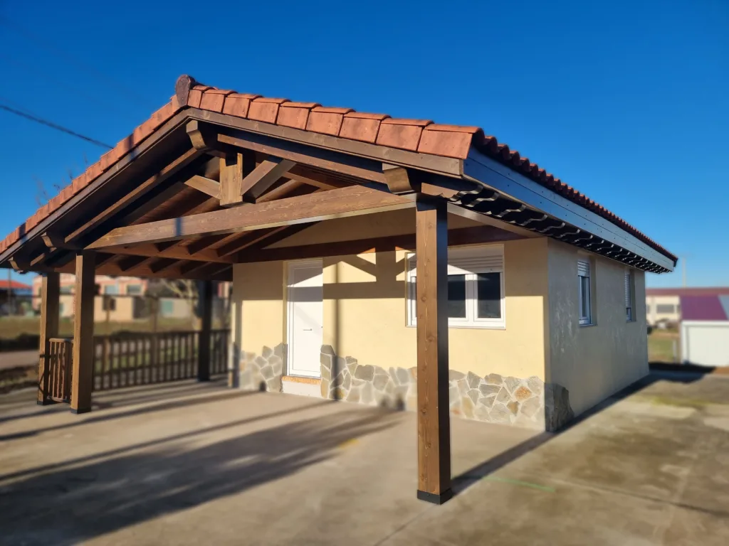 Normalmente las casas modulares se realizan con entramados ocultos muy sencillos, preferentemente metálicos. Este hecho hace que normalmente sus fachadas no tengan un carácter autoportante y que cuando la cubierta es pesada (teja) tenga que llevar refuerzos adicionales. Igualmente ofrecen desventajas con posterioridad en su instalación si se requiere ampliar (aunque sea con un porche) por no ser lo suficientemente robustas como para soportar cargas laterales. Nuestras estructuras de vivienda industrializada se realizan íntegramente en madera de abeto laminado GL24h homologado que, en ajuste al CTE, tienen calculadas todas sus cargas y resistencia al fuego (RF30) y tanto por el carácter autoportante de sus fachadas como por la concepción de su cubierta están especialmente diseñadas para soportar las cargas iniciales y futuras ampliaciones.